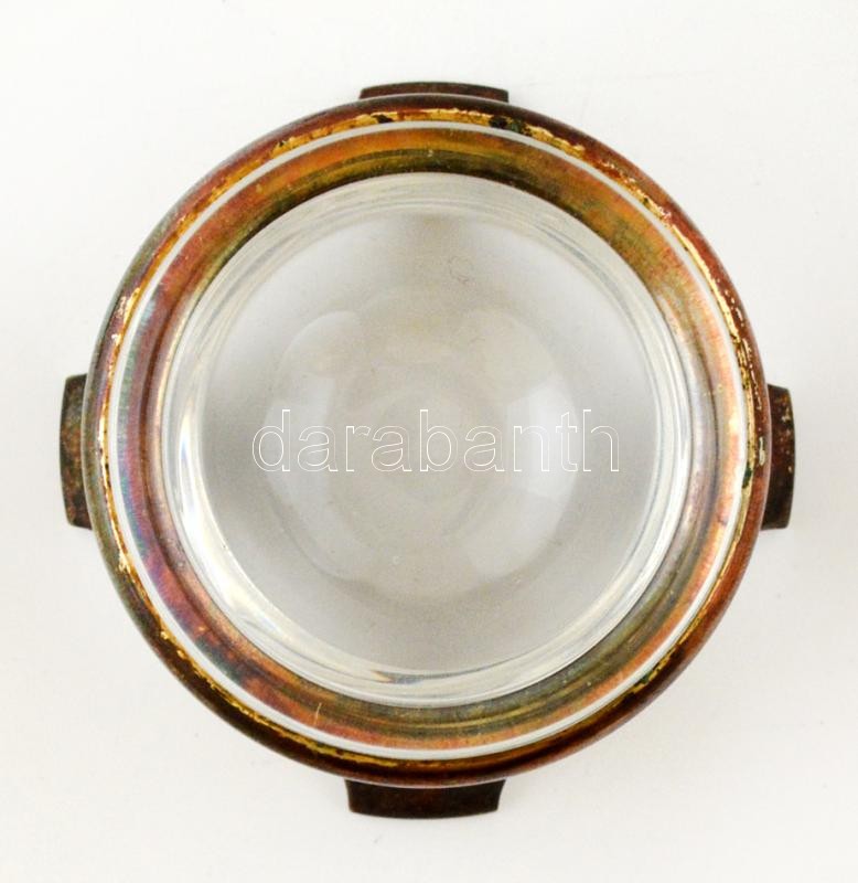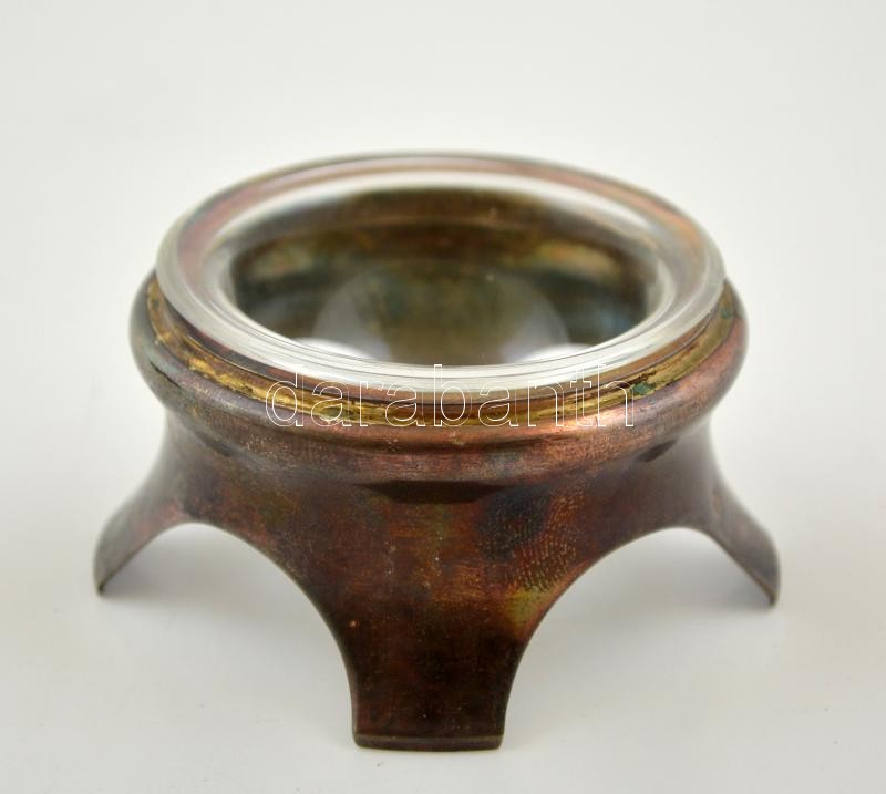 Leírás: Ezüst(Ag) fűszertartó, sérült üvegbetéttel, jelzett, d: 6 cm, m: 3 cm, nettó: 33,3 g