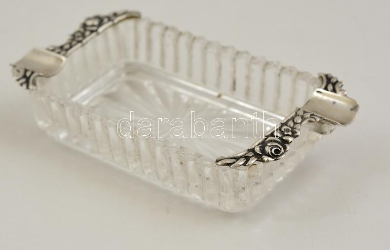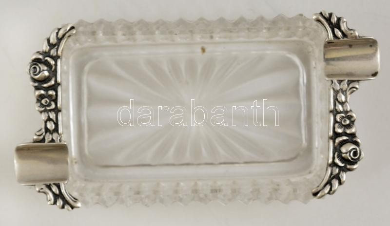 Leírás: Kristály hamuzó ezüst rátéttel / Crystal ashtray with silver 6x7 cm
