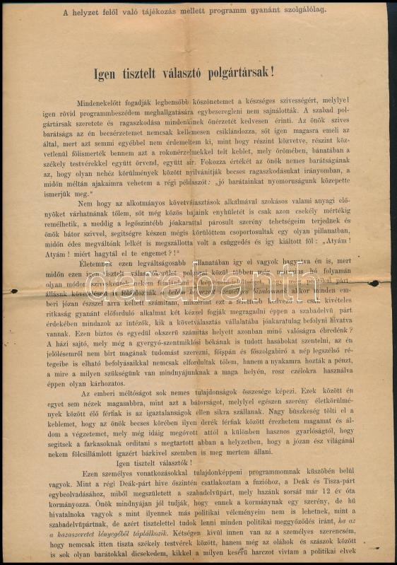 1887 Szeremley Csázár Lajos: Igen tisztelt választó polgártársak! Szab...