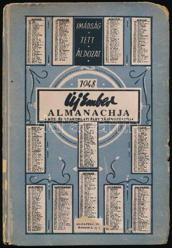 1948 Új Ember Almanachja. Szerk.: Nagy Miklós, Saád Béla. Bp., Légrády. Kiadói kartonált papírkötés, kopottas borítóval, sérült gerinccel, de belül jó állapotban.