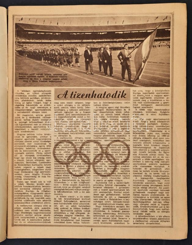 Leírás: 1956 A Melbournei Olimpia, sok fotóval illusztrált nyomtatvány, pp.:62,