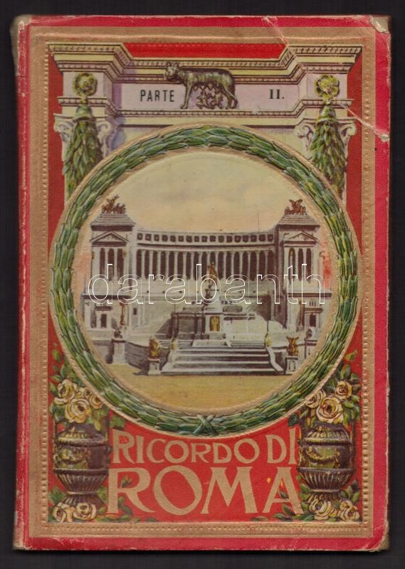Ricordo di Roma. Parte II. 32 Vedute. Képes leporelló Róma városáról, látképekkel, olasz, francia, angol, német leírásokkal, kopottas borítóval, / Pictures about Rome with pull-out leporello, with worn cover, in Italian, French, English, German languages.