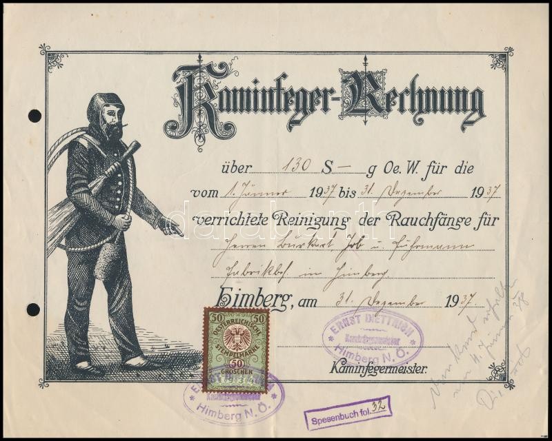 Leírás: 1937 Ausztria dekoratív kéményseprő számla
