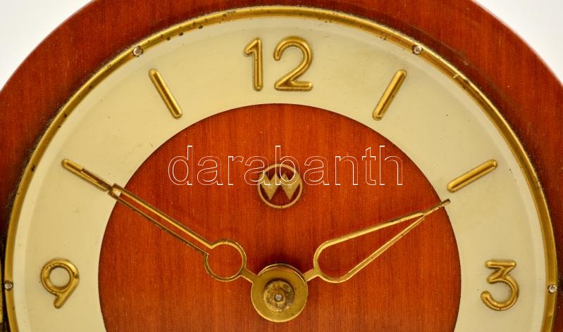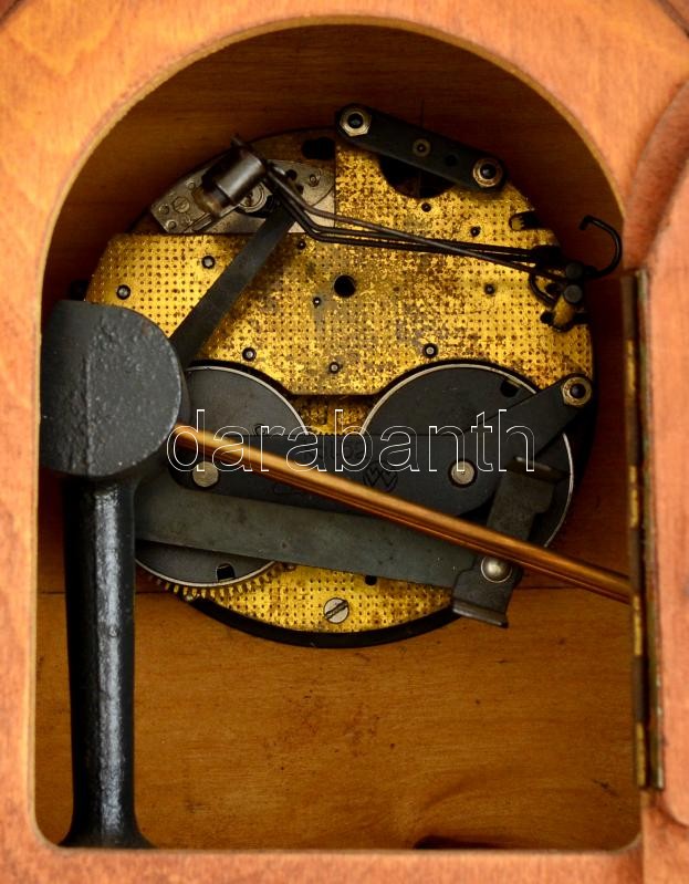 Leírás: Anker járatos, feles ütő asztali óra, kulccsal, működik, h: 41 cm