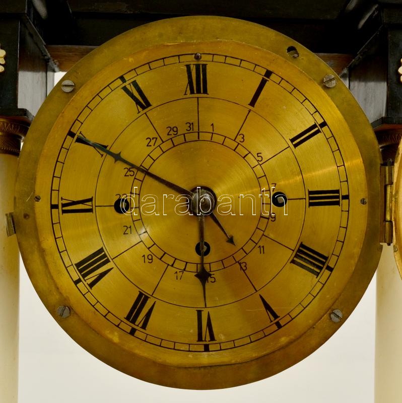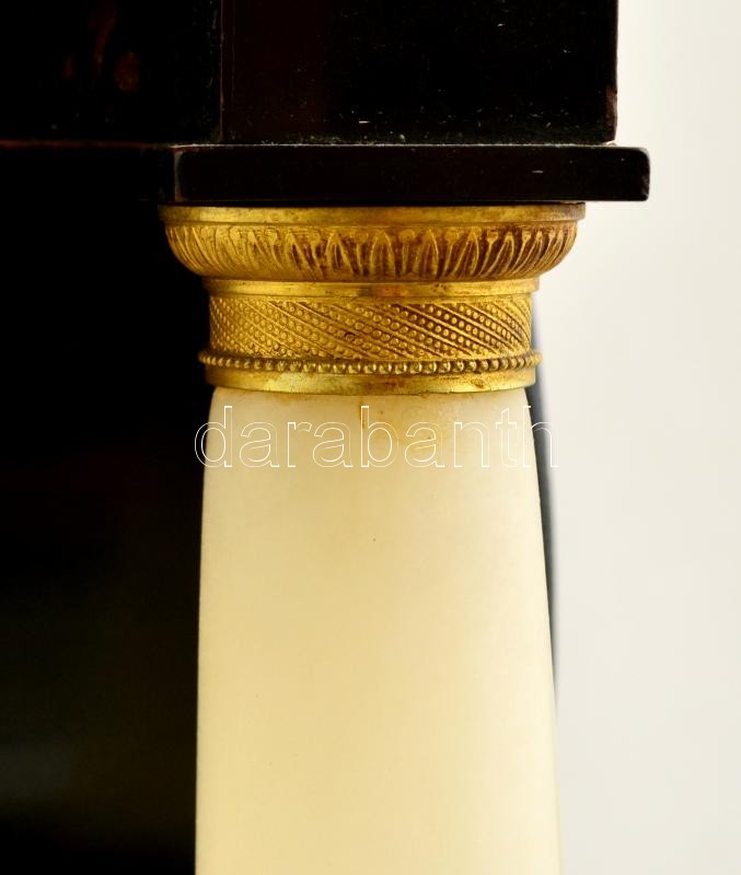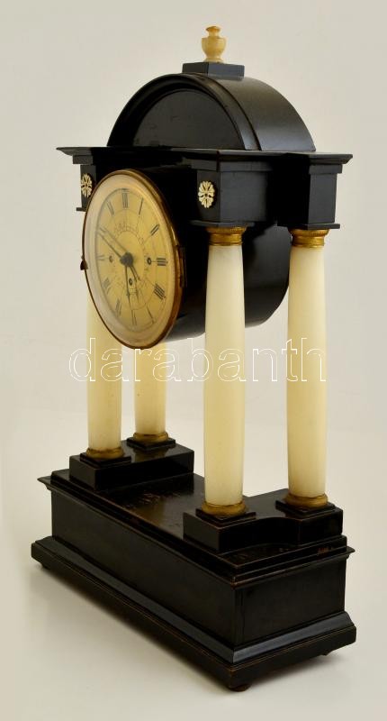 XIX. sz. közepe: Alabástrom oszlopos falióra ingás, felesütős szerkezettel. Inga törött, de azon kívül elvileg működik / Vintage table clock with broken pendulum. 57 cm