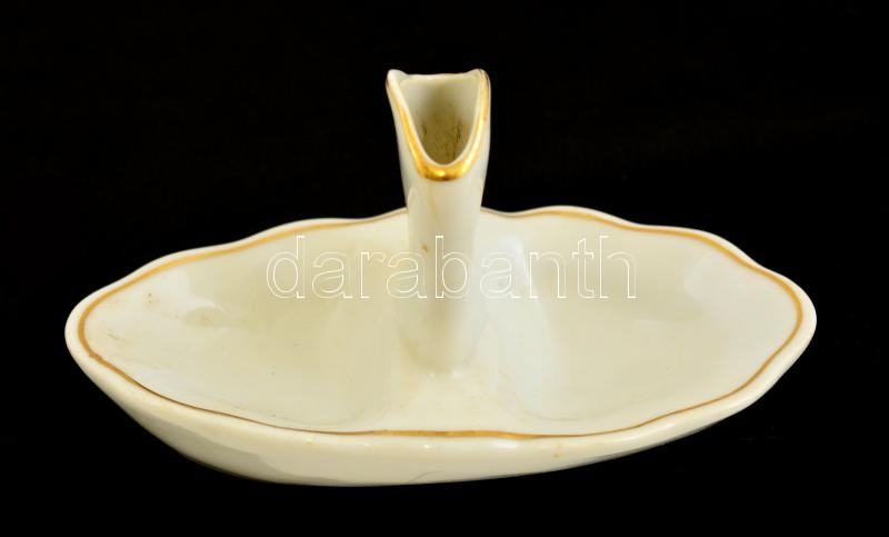 Leírás: Aranyozott szélű porcelán sótartó, jelzett, hibátlan, 11x6x7 cm