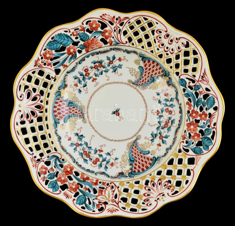 Leírás: Herendi Tupini mintás áttört szélű dísz tányér, kézzel festett, jelzett, hibátlan, d:20,5 cm