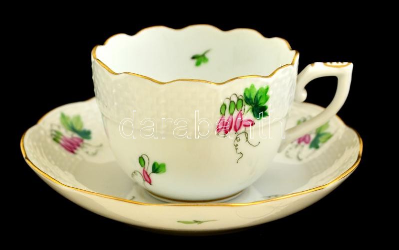 Leírás: Herendi harang virág mintás mokkás csésze és alj, kézzel festett, jelzett, kopott aranyozás