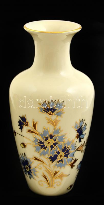 Leírás: Zsolnay búzavirág mintás váza, kézzel festett, jelzett, hibátlan, m: 16 cm