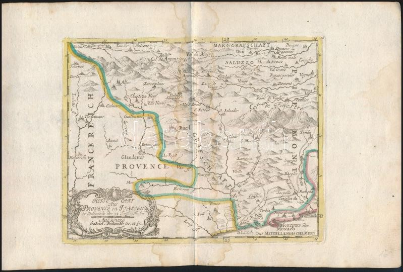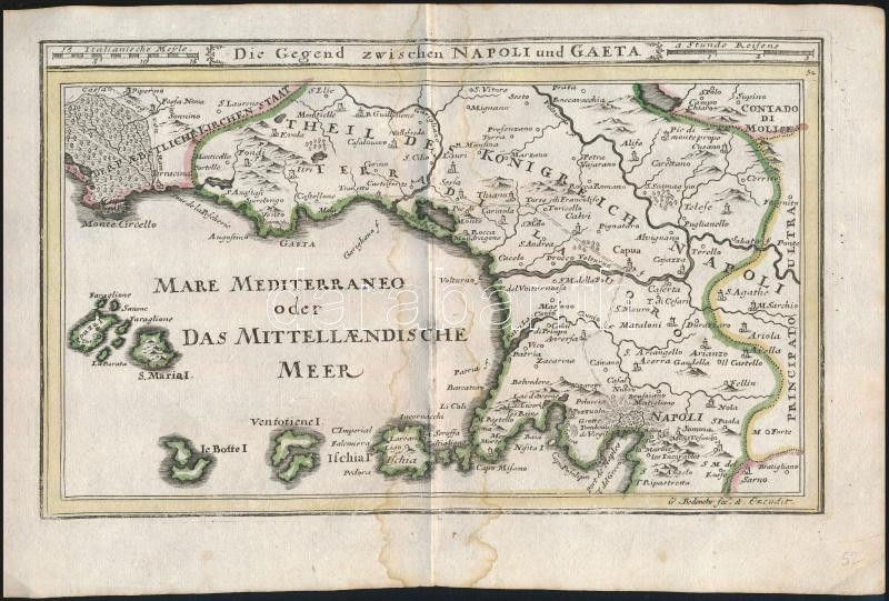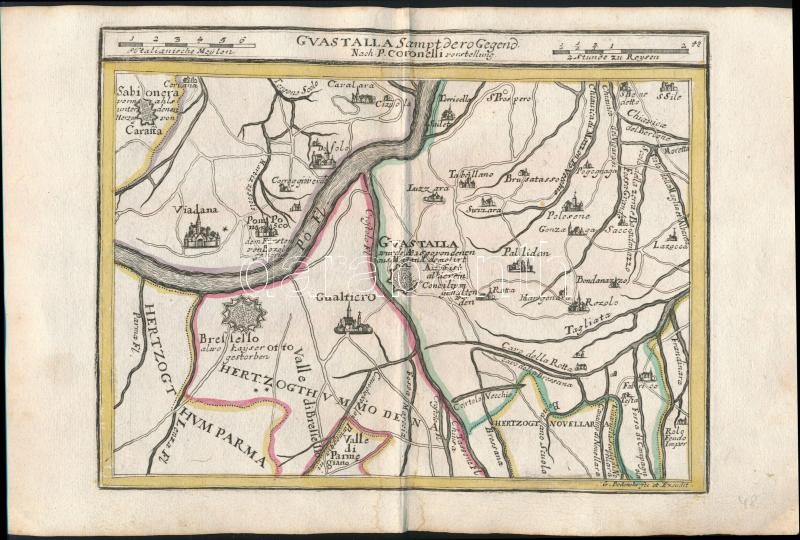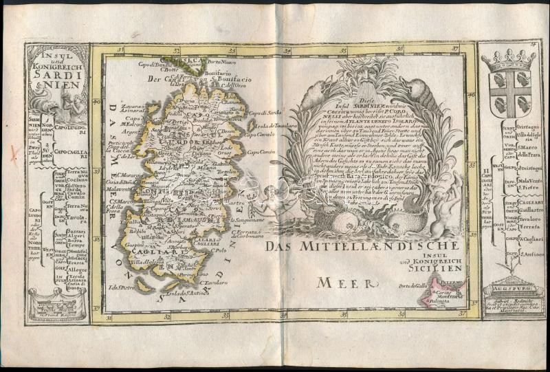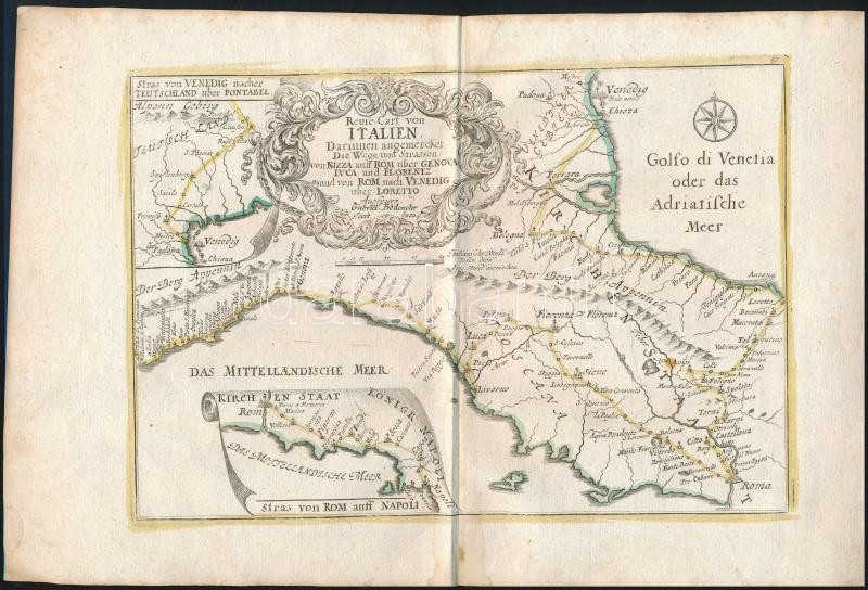 cca 1700 Olaszországi területek térképe. Összesen 6 db: Nápoly, Guastalla, Szardínia, Mantova Színezett, díszes kartusú rézmetszet. Megjelent: Johann Hofmann Atlas Curieux oder neuer und Compendieuser Atlas. (Augsburg, 1700). Méret: 29x20 cm / cca 1700 Maps of Italy. Colored etching 31x20 cm