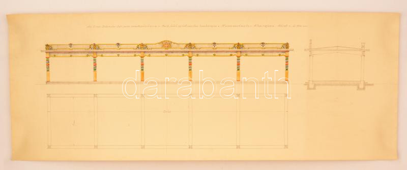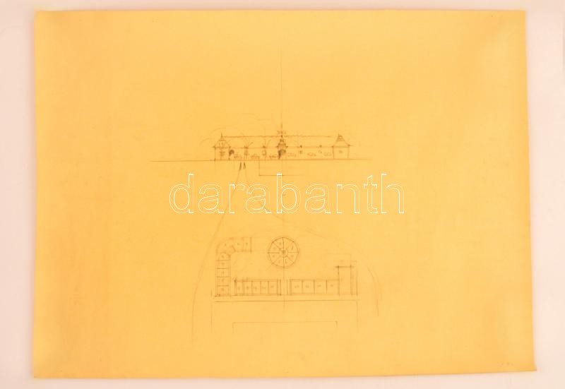 1930 A Budapest I. ker. Döbrentei téri állandó piaci árusító helyek tervei. Devecska Ferenc belsőépítész, tanár által készített tervek. 10 db különböző méretű, több szignált egy színezett.