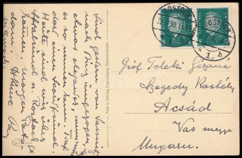 Leírás: 1930 Teleki Pál kézzel írt levelezőlapja édesanyja részére