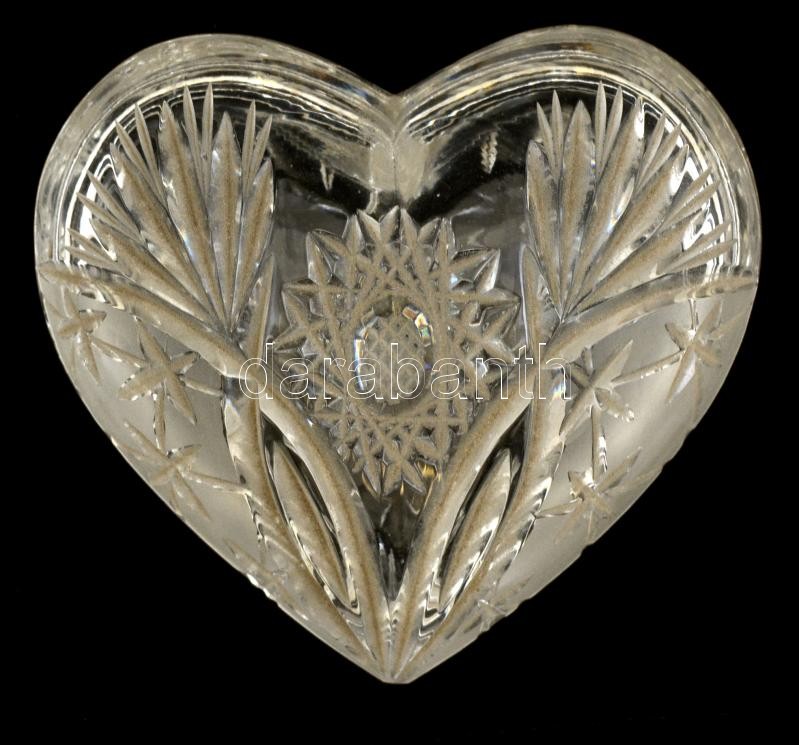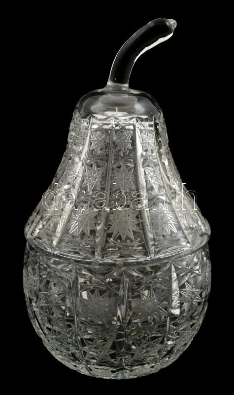 Leírás: Ólomkristály bonbonier, 2 db, metszet, minimális lepattanással, m: 16 cm, d: 8,5 cm, 7x9 cm.