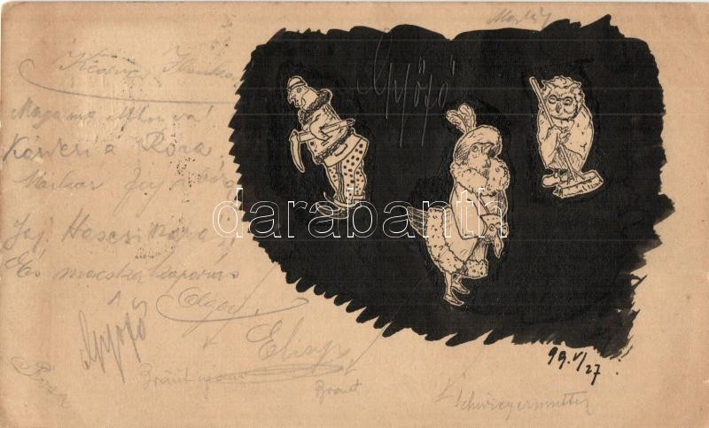 1899 Bird people. Hand-painted art postcard (EK)