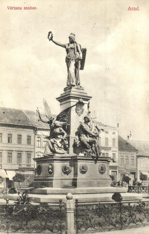 Arad, Vértanú szobor, Hubert J. és társa üzlete, szappan és gyertya gy... https://www.darabanth.com/hu/313-Gyorsarveres/313.0/Kepeslapok/Erdely~500007/Arad-Vertanu-szobor-Hubert-J-es-tarsa-uzlete-szappan-es-gyertya-gyar-monument-shops-s~II1716812