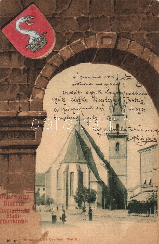 Beszterce, Bistritz, Bistrita; Evangélikus templom. Carl Csallner kiad... https://www.darabanth.com/hu/313-Gyorsarveres/313.0/Kepeslapok/Erdely~500007/Beszterce-Bistritz-Bistrita-Evangelikus-templom-Carl-Csallner-kiadasa-cimeres-litho-keret-~II1716240