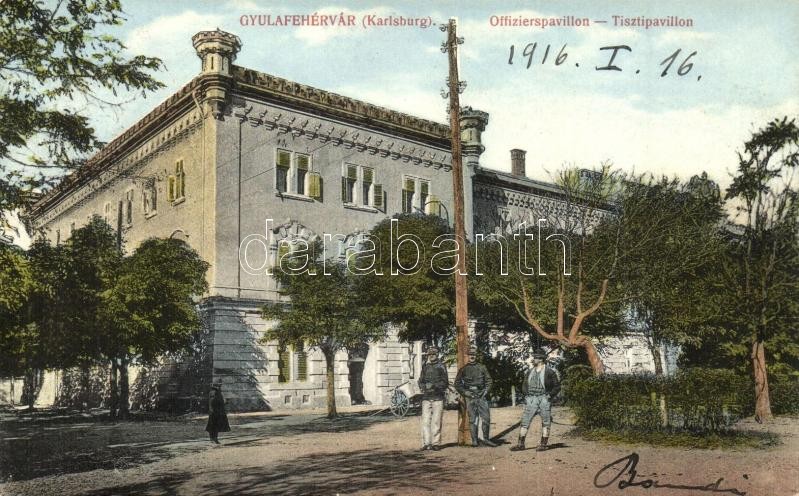 Gyulafehérvár, Karlsburg, Alba Iulia; Tiszti pavilon / officers' ... https://www.darabanth.com/hu/313-Gyorsarveres/313.0/Kepeslapok/Erdely~500007/Gyulafehervar-Karlsburg-Alba-Iulia-Tiszti-pavilon-officers-pavilion~II1716870