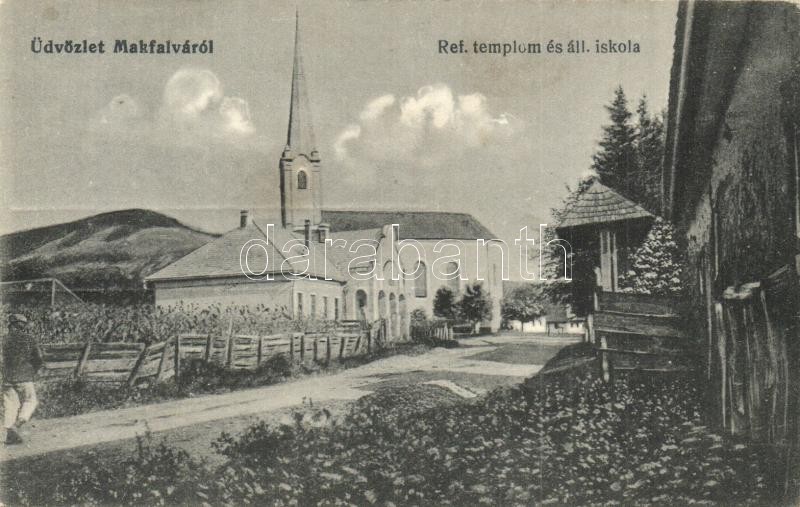 Makfalva, Ghindari; utca, református templom, állami iskola / street v... https://www.darabanth.com/hu/313-Gyorsarveres/313.0/Kepeslapok/Erdely~500007/Makfalva-Ghindari-utca-reformatus-templom-allami-iskola-street-view-with-Calvinist-church-an~II1716899