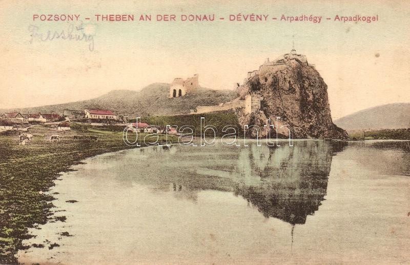 Leírás: Dévény, Theben a. d. Donau, Devin (Pozsony); Árpád-hegy / monument (Rb)