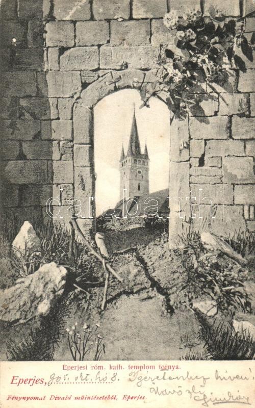 Eperjes, Presov; Római katolikus templom tornya. Divald / church https://www.darabanth.com/hu/313-Gyorsarveres/313.0/Kepeslapok/Felvidek~500008/Eperjes-Presov-Romai-katolikus-templom-tornya-Divald-church~II1715652