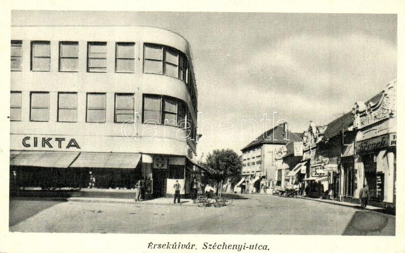 Érsekújvár, Nové Zámky; Széchenyi utca, Cikta üzlet, kerékpár / street... https://www.darabanth.com/hu/313-Gyorsarveres/313.0/Kepeslapok/Felvidek~500008/Ersekujvar-Nove-Zamky-Szechenyi-utca-Cikta-uzlet-kerekpar-street-view-shops-bicycle~II1718138