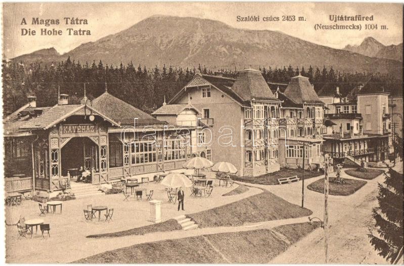 Újtátrafüred, Neu-Schmecks, Novy Smokovec; kávéház / cafe (fa) https://www.darabanth.com/hu/313-Gyorsarveres/313.0/Kepeslapok/Felvidek~500008/Ujtatrafured-Neu-Schmecks-Novy-Smokovec-kavehaz-cafe-fa~II1645531
