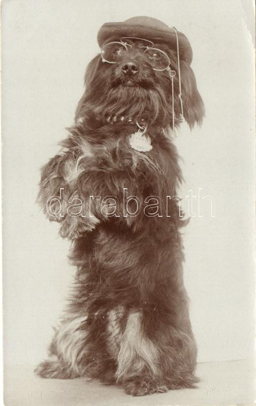 1907 Dog with hat and glasses, humour, photo (EK) https://www.darabanth.com/hu/313-Gyorsarveres/313.0/Kepeslapok/Futrinka-Arveres-kepeslap-tetelek~700009/1907-Dog-with-hat-and-glasses-humour-photo-EK~II1240974