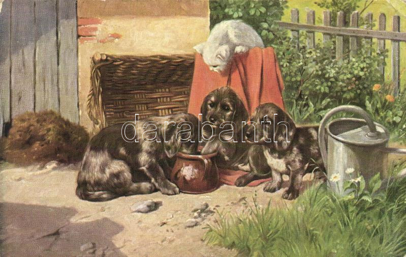 Leírás: Dog puppies with cat, T.S.N. Serie 2050. (EK)