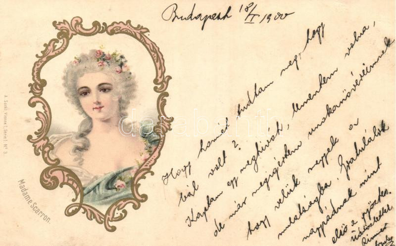 Madame Scarron, litho A. Sockl Serie I. No. 3 https://www.darabanth.com/hu/313-Gyorsarveres/313.0/Kepeslapok/Hires-Ember~500066/Madame-Scarron-litho-A-Sockl-Serie-I-No-3~II935270