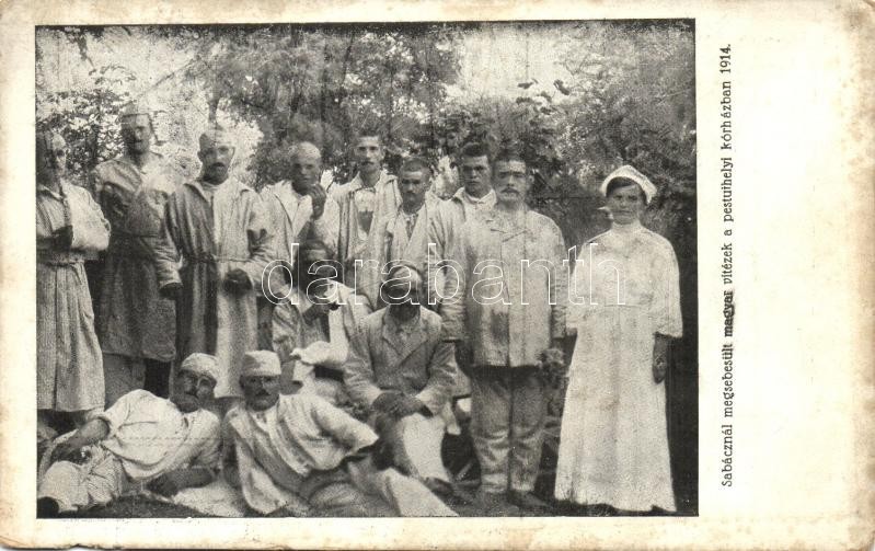 1914 A Szabácsnál megsebesült magyar vitézek a pestújhelyi hadikórházban, ápolónővel / WWI Hungarian military hospital with the K.u.K. soldiers who injured at Sabac (kis szakadás / small tear)