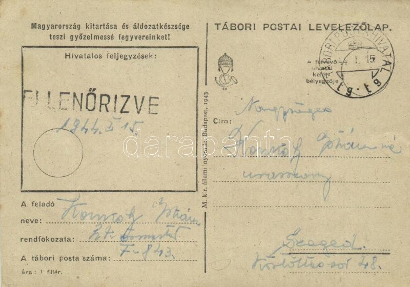 1944 Lengyelföld. Tábori Postai Levezőlap / WWII Hungarian military ai... https://www.darabanth.com/hu/313-Gyorsarveres/313.0/Kepeslapok/Katonai~500072/1944-Lengyelfold-Tabori-Postai-Levezolap-WWII-Hungarian-military-aircraft-EK~II1717625