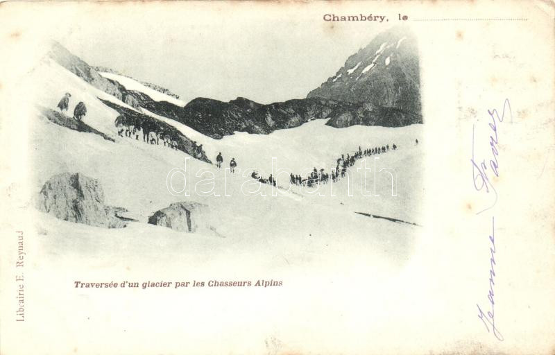 Leírás: Chambéry, Traversée d'un glacier par les Chasseurs Alpins / Alpine Hunter soldiers (EK)