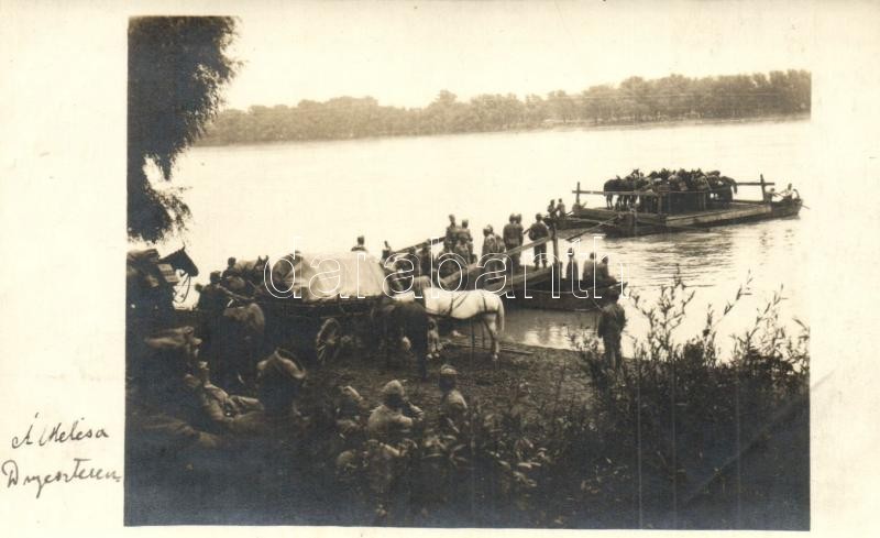 Leírás: Első világháborús osztrák-magyar katonai lap, átkelés a Dnyeszteren / WWI K.u.K. military, crossing on Dniester. photo