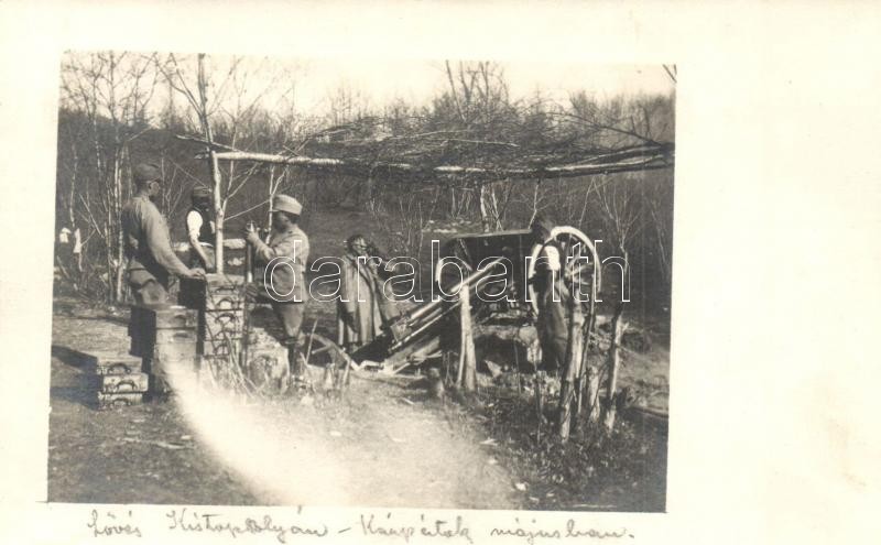 Első világháborús osztrák-magyar katonák lövés közben Kistopolyán a Kárpátokban májusban / WWI K.u.K. military, firing soldiers in the Carpathians in May. photo