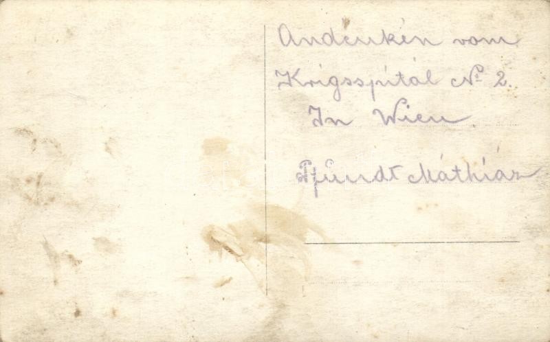 Első világháborús sérült osztrák-magyar katonák a bécsi 2. számú hadikórház előtt. csoportkép / WWI K.u.K. military, injured soldiers in front of the 2nd military hospital. group photo (fl)