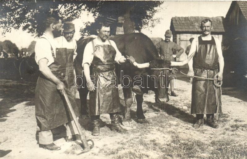 Wladimir Wolinskij, Volodymyr-Volynskyi; Első világháborús osztrák-magyar tábori konyha mészárosai / WWI K.u.K. military, butchers of the field kitchen with ox. photo