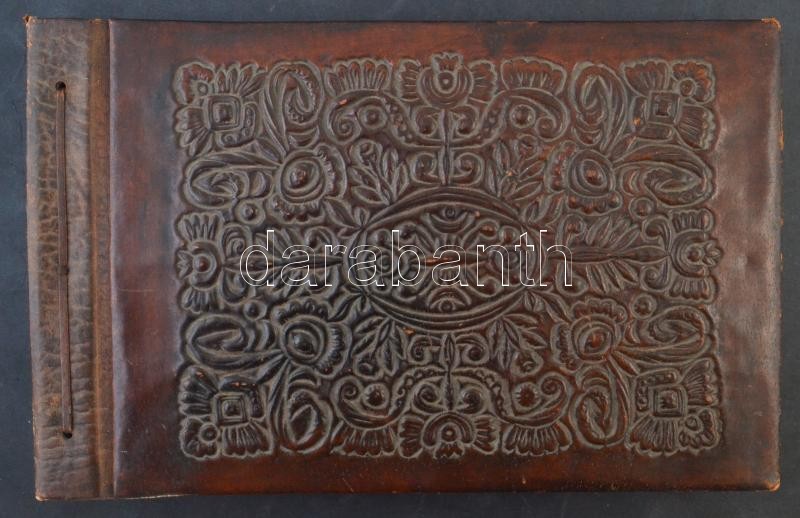 Leírás: Nagy méretű dombornyomott bőr képeslapalbum kb. 140 férőhellyel / Big sized leather postcard album with embossed cover for cca. 140 cards