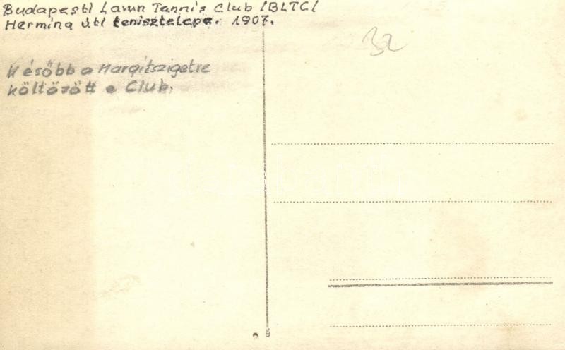 1907 Budapest XIV. Hermina út, Budapesti Lawn Tennis Club (BLTC) tenis... https://www.darabanth.com/hu/313-Gyorsarveres/313.0/Kepeslapok/Magyarorszag~500006/1907-Budapest-XIV-Hermina-ut-Budapesti-Lawn-Tennis-Club-BLTC-tenisztelepe-teniszezok-csoportk~II1716148
