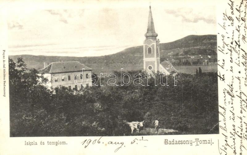 Badacsonytomaj, Iskola és templom. Payer Antal kiadása (EK) https://www.darabanth.com/hu/313-Gyorsarveres/313.0/Kepeslapok/Magyarorszag~500006/Badacsonytomaj-Iskola-es-templom-Payer-Antal-kiadasa-EK~II1715872