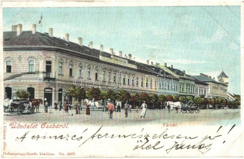 Leírás: Békéscsaba, Csaba; Fő tér, Fiume szálloda és kávéház, Rosenthal testvérek üzlete (EK)