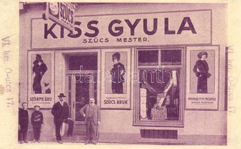 Budapest VI. Ó utca 17. Kiss Gyula szűcs mester üzlete, reklámlap (r) https://www.darabanth.com/hu/313-Gyorsarveres/313.0/Kepeslapok/Magyarorszag~500006/Budapest-VI-O-utca-17-Kiss-Gyula-szucs-mester-uzlete-reklamlap-r~II1716073