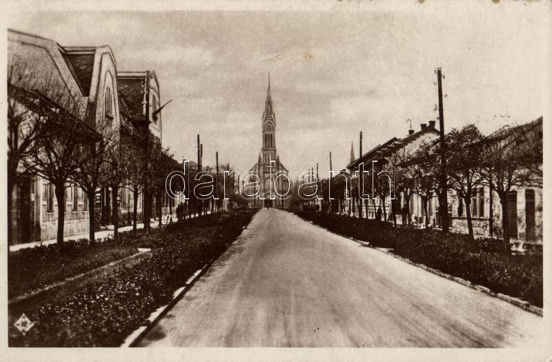 Leírás: Budapest XIX. Kispest, Római katolikus templom, főutca