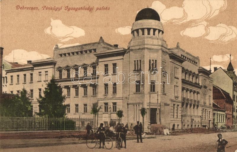 Debrecen, Pénzügyi igazgatósági palota, útépítés, kerékpárosok https://www.darabanth.com/hu/313-Gyorsarveres/313.0/Kepeslapok/Magyarorszag~500006/Debrecen-Penzugyi-igazgatosagi-palota-utepites-kerekparosok~II1599041