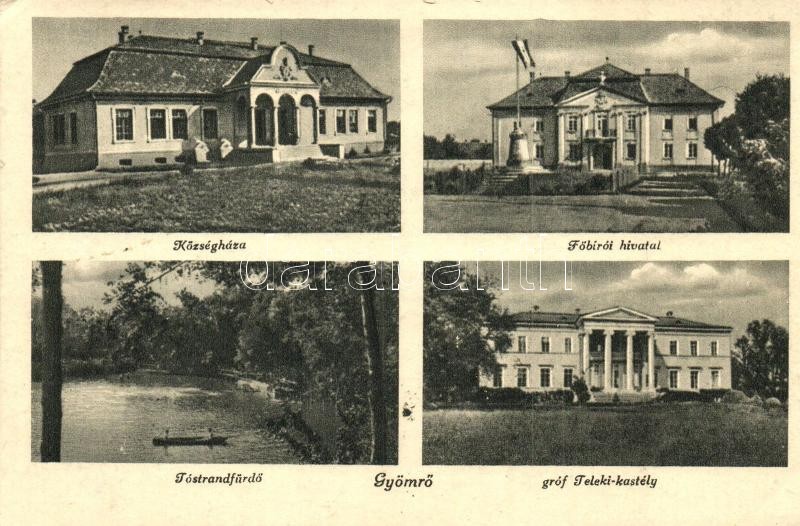 Leírás: Gyömrő, Községháza, Főbírói hivatal, Tó strandfürdő, Gróf Teleki kastély (EK)