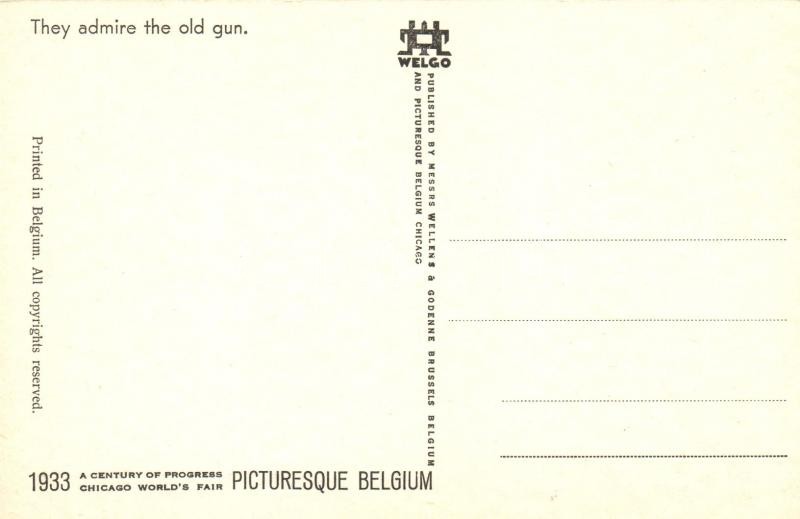 1933 Chicago World's Fair art postcard, They admire the old gun; ... https://www.darabanth.com/hu/313-Gyorsarveres/313.0/Kepeslapok/Muveszlapok~500078/1933-Chicago-Worlds-Fair-art-postcard-They-admire-the-old-gun-Messrs-Wellens-Godenne-s-Jean-Dr~II1206521