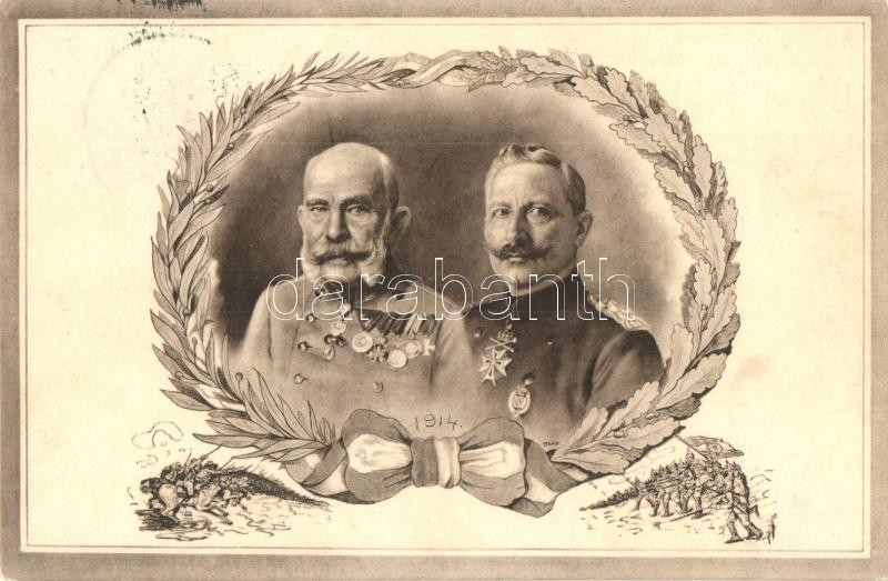 Viribus Unitis military propaganda card, Wilhelm II, Franz Joseph + 19... https://www.darabanth.com/hu/313-Gyorsarveres/313.0/Kepeslapok/Propaganda-politika~500081/Viribus-Unitis-military-propaganda-card-Wilhelm-II-Franz-Joseph-plus-1916-IV-Karoly-koronazasa-na~II1689356