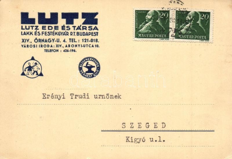 Lutz Ede és társa lakk és festékgyár Rt. reklámlapja. Budapest / Hunga... https://www.darabanth.com/hu/313-Gyorsarveres/313.0/Kepeslapok/Reklam~500082/Lutz-Ede-es-tarsa-lakk-es-festekgyar-Rt-reklamlapja-Budapest-Hungarian-varnish-and-paint-f~II1718092