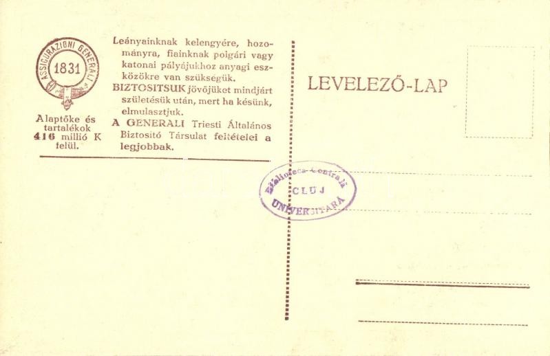 Mienk a ma, gyermekeinké a holnap. Generali Triesti Általános Biztosít... https://www.darabanth.com/hu/313-Gyorsarveres/313.0/Kepeslapok/Reklam~500082/Mienk-a-ma-gyermekeinke-a-holnap-Generali-Triesti-Altalanos-Biztosito-Tarsulat-reklamlapja-~II1717799