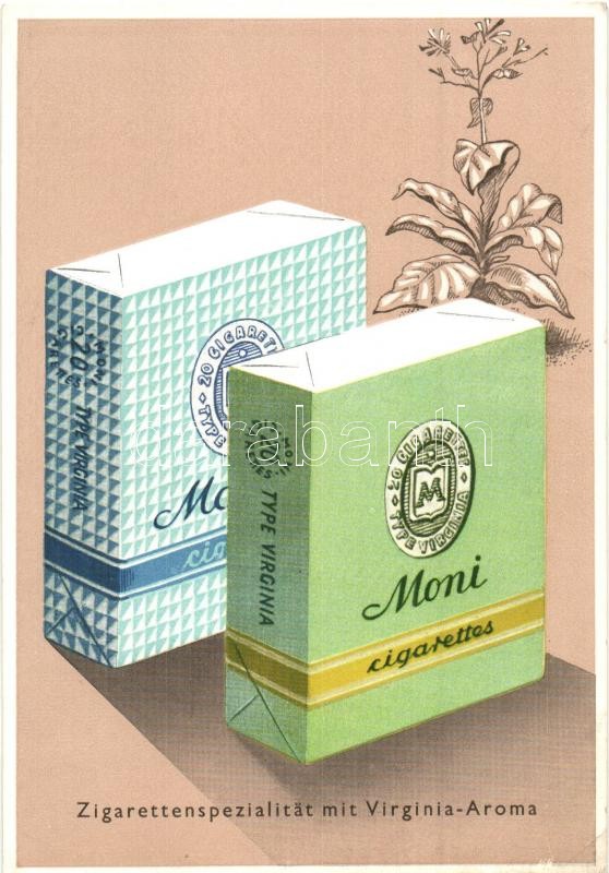Leírás: Zigarettenspezialität mit Virginia-Aroma / Moni cigarettes advertisement card (EK)