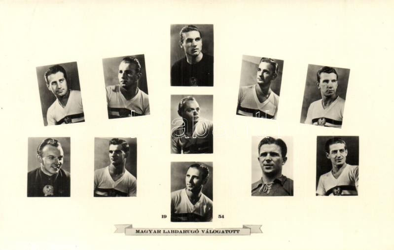 1954 Magyar Labdarúgó Válogatott (a világbajnokság vesztes csapata), Aranycsapat, Puskás, Grosics, Hidegkuti; Képzőművészeti Alap Kiadóvállalat / Hungarian national football team, Golden Team